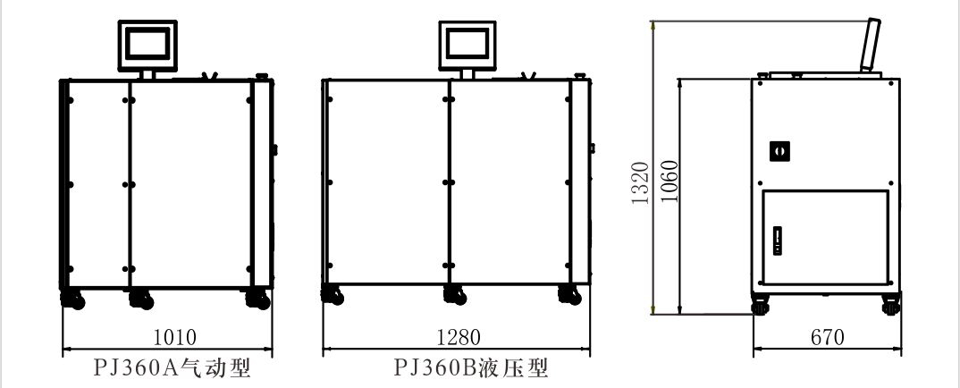• PJ360A為氣動型,運行平穩,無噪音污染。 PJ360B為液壓機型。